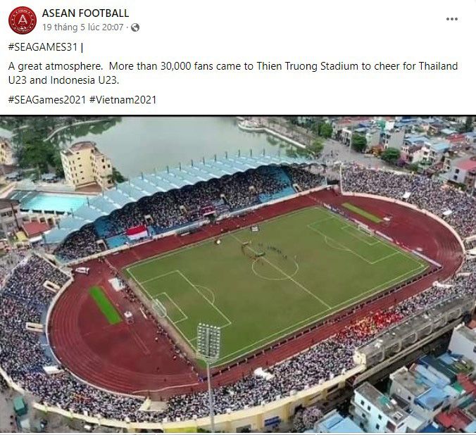 Trang fanpage ASEAN Football ấn tượng với lượng cổ động viên tới sân cổ vũ cho đội tuyển U23 Thái Lan và U23 Indonesia (Ảnh chụp màn hình)
