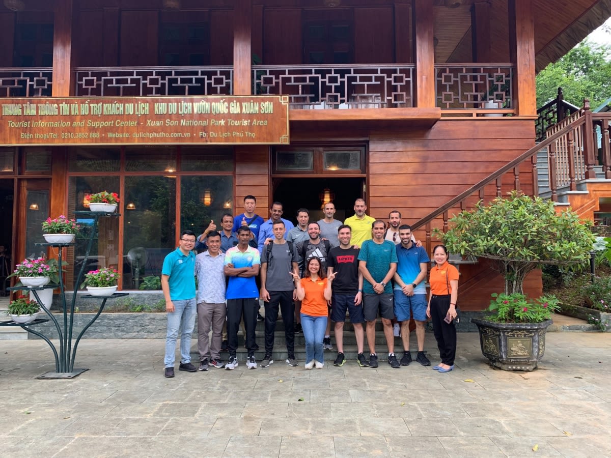 Tổ trọng tài quốc tế làm nhiệm vụ tại Bảng A môn Bóng đá nam SEA Games 31 tham quan, khám phá vẻ đẹp thiên nhiên, tìm hiểu nét văn hóa độc đáo của đồng bào Mường, Dao tại Vườn Quốc gia Xuân Sơn. (Ảnh: Trung tâm thông tin xúc tiến Du lịch Phú Thọ)