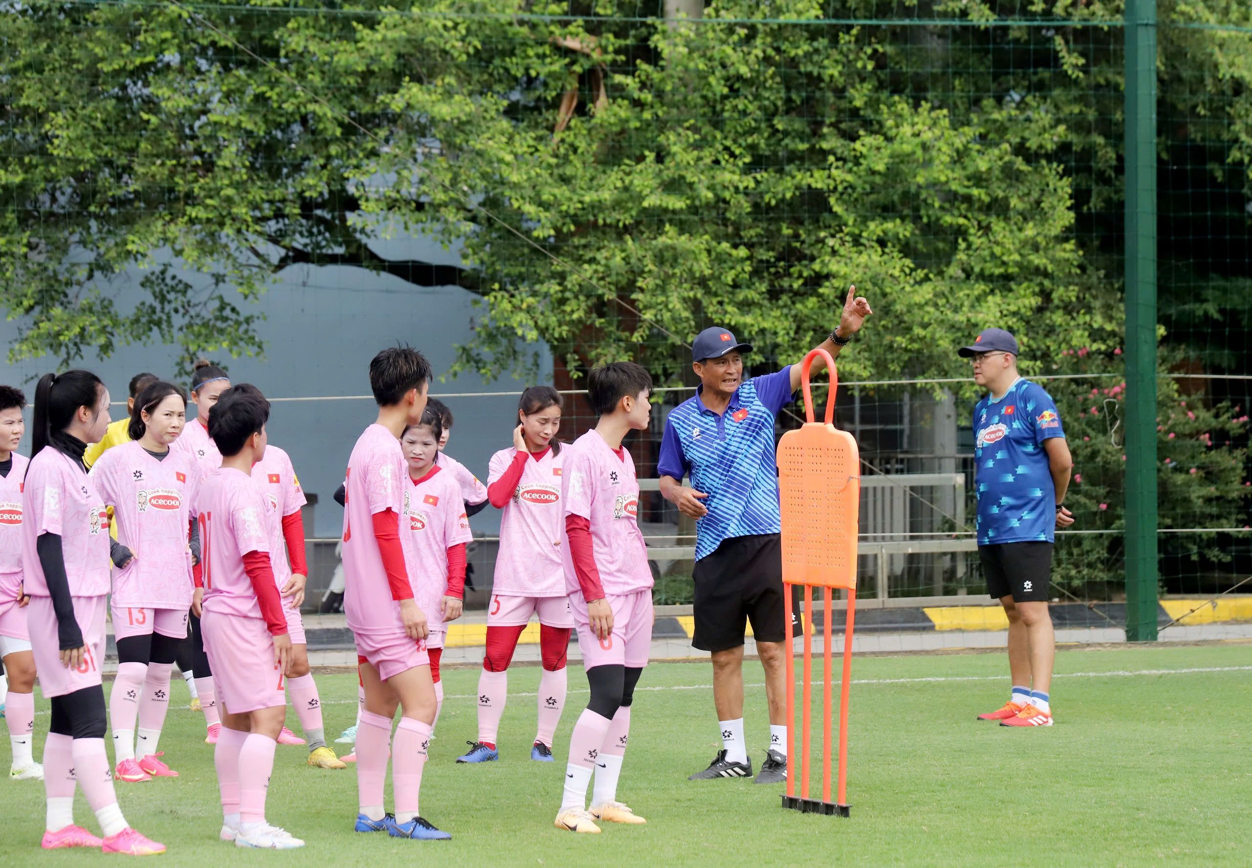 HLV Mai Đức Chung: Đầu tiên tôi phải nói là rất vất vả. Tôi đã từng làm bóng đá nam và bóng đá nữ, kể cả đội tuyển. Giáo án hai đội gần như nhau. Đội nam tập được thì đội nữ cũng tập được. Nhưng đội nữ có một cái khác biệt đó là tinh thần thi đấu, là sự dẻo dai bền bỉ.