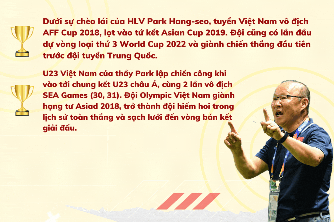 5 năm dưới thời thầy Park, mọi thứ đã thay đổi. Đội tuyển Việt Nam vô địch AFF Cup 2018, lọt vào tứ kết Asian Cup 2019 và vòng loại thứ 3 World Cup 2022. U23 Việt Nam tiến đến chung kết U23 châu Á 2018, vô địch SEA Games 30, 31, còn Olympic Việt Nam giành hạng Tư ASIAD 2018, chỉ thua duy nhất 1 trận trong 90 phút trước Olympic Hàn Quốc của Son Heung-min.