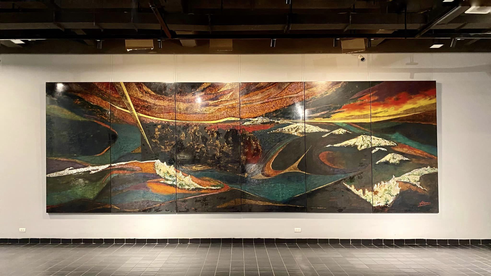 Đó là lý do chị đặt tên cho triển lãm lần này một cái tên rất lạ: Toảo (ghép từ hai chữ “tỏ” và “ảo). Triển lãm gồm tác phẩm sơn mài trên vóc “Vô cực” có tổng diện tích 20m2 và series “Đường cong” sơn mài trên toan gồm 8 tác phẩm nhỏ có kích thước 120x150cm.
