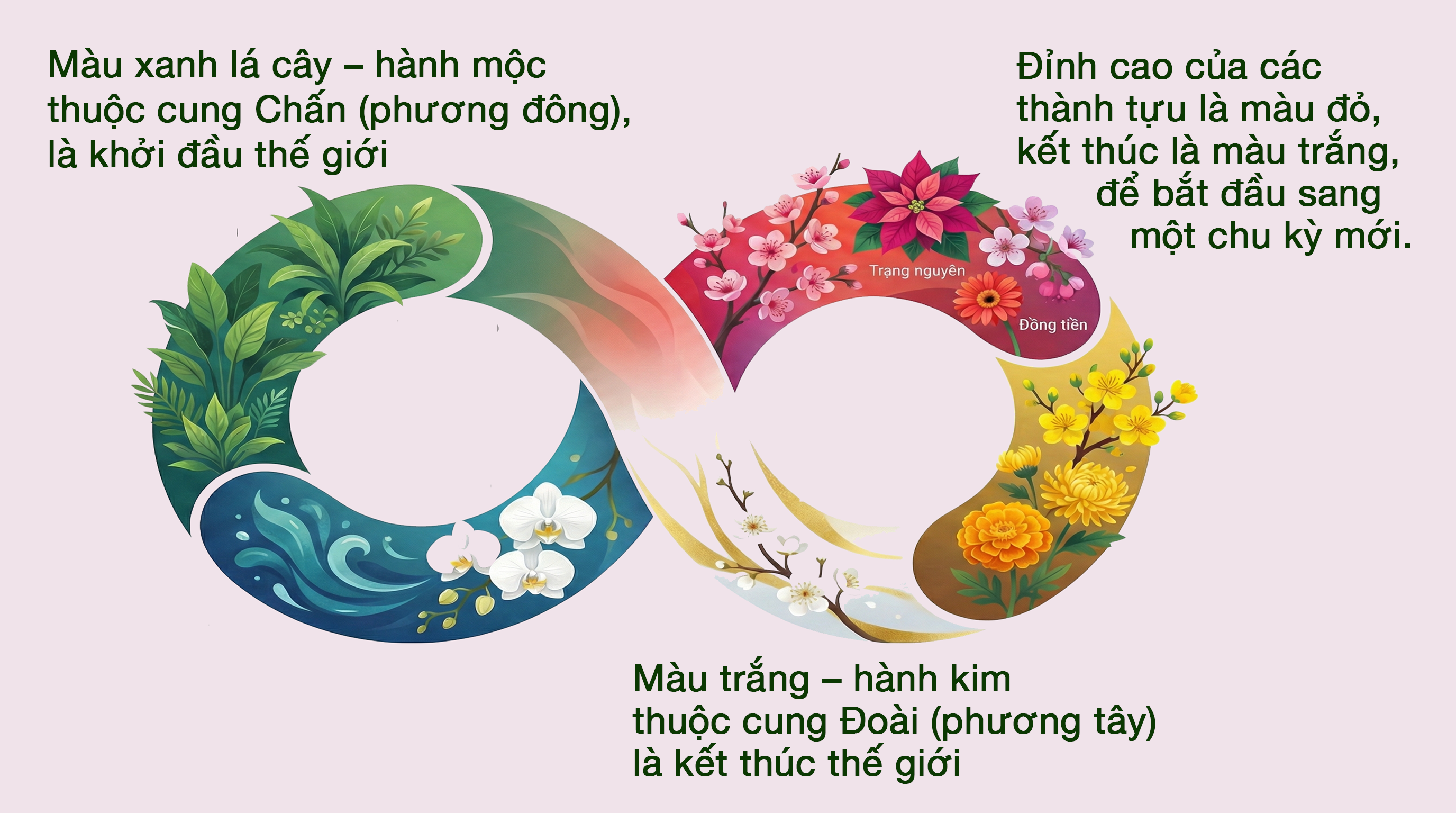 Hằng năm, mùa xuân đến là mùa khởi đầu của thế giới vạn vật. Trải qua hàng nghìn năm, người Việt nói riêng và các dân tộc thuộc nền văn hóa Á Đông nói chung phát hiện ra rằng, tất cả những màu sắc sống, những sinh vật sống đều ảnh hưởng trực tiếp đến khí vận trong năm, tức là các thăng trầm và kết quả của con người khi tiếp cận với chúng.