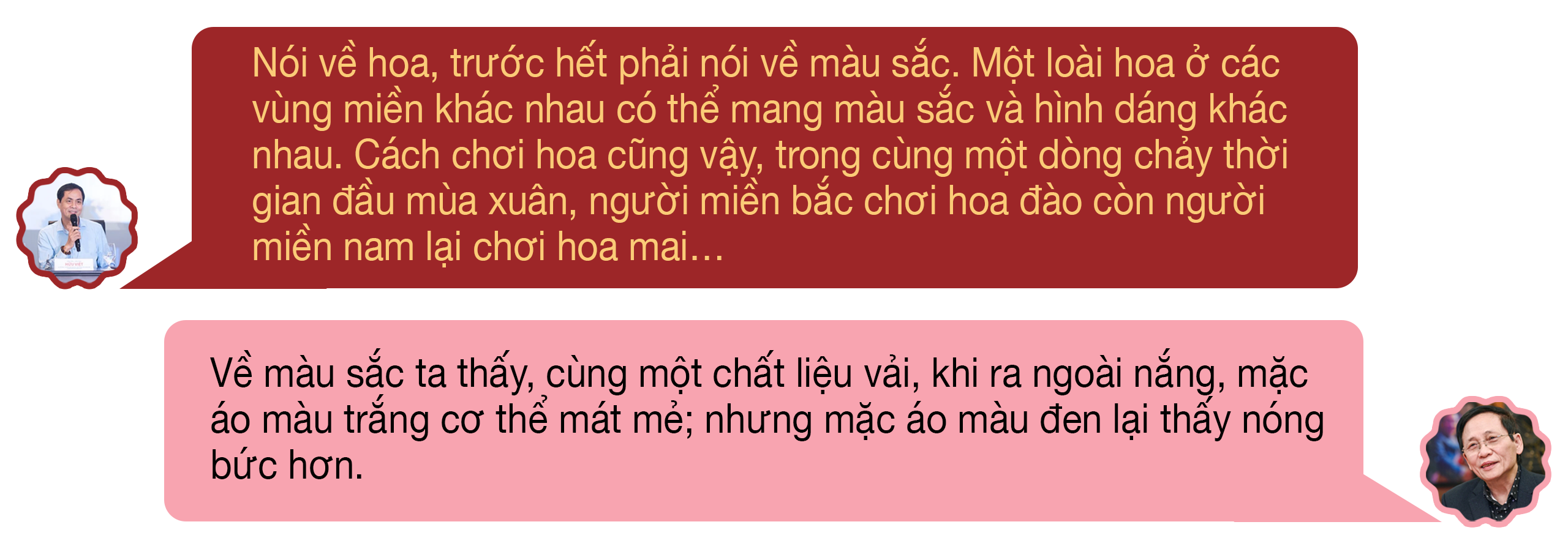 Còn khi bàn về bắc-nam không phải chỉ nói về kinh độ, vĩ độ mà còn là về văn hóa. Thời Bắc thuộc, nước ta nằm ở phía nam của Trung Quốc, tất cả các màu sắc phải dùng theo nguyên lý tương sinh hoặc tương ứng để thu được phát triển lớn mạnh hơn. Theo ngũ hành, phương nam (ly) là hỏa, hỏa khí có vượng thì nước mới thịnh. Trên quan niệm đó, tôi cho rằng tập tục chơi hoa đào bắt đầu từ đây.