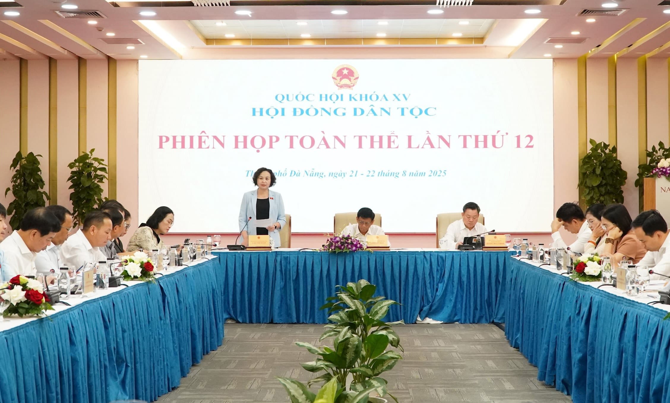 Toàn cảnh phiên họp toàn thể lần thứ 12 của Hội đồng Dân tộc ngày 21/8/2025.