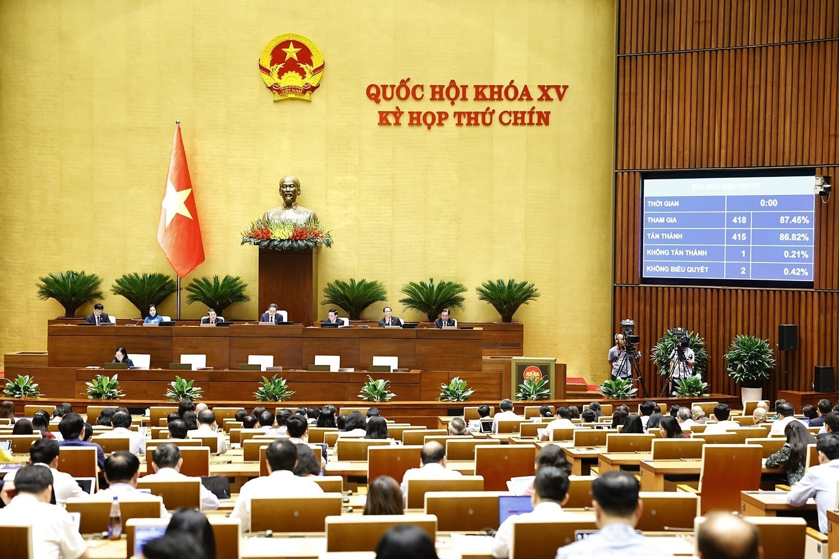 Đặc biệt, Quốc hội đã thông qua Nghị quyết số 203/2025/QH15 về sửa đổi, bổ sung một số điều của Hiến pháp nước Cộng hòa xã hội chủ nghĩa Việt Nam; thông qua Nghị quyết số 202/2025/QH15 về sắp xếp các đơn vị hành chính cấp tỉnh (giảm từ 64 tỉnh, thành phố trực thuộc trung ương xuống còn 34 tỉnh, thành phố trực thuộc trung ương); Ủy ban Thường vụ Quốc hội đã thông qua 34 Nghị quyết về sắp xếp đơn vị hành chính cấp xã, thể chế hóa kịp thời, đầy đủ chủ trương của Đảng về tiếp tục đổi mới, sắp xếp tổ chức bộ máy của hệ thống chính trị; hiến định mô hình chính quyền địa phương 2 cấp; tái cấu trúc tổ chức Mặt trận Tổ quốc Việt Nam và định vị sát hơn vai trò của Công đoàn Việt Nam.