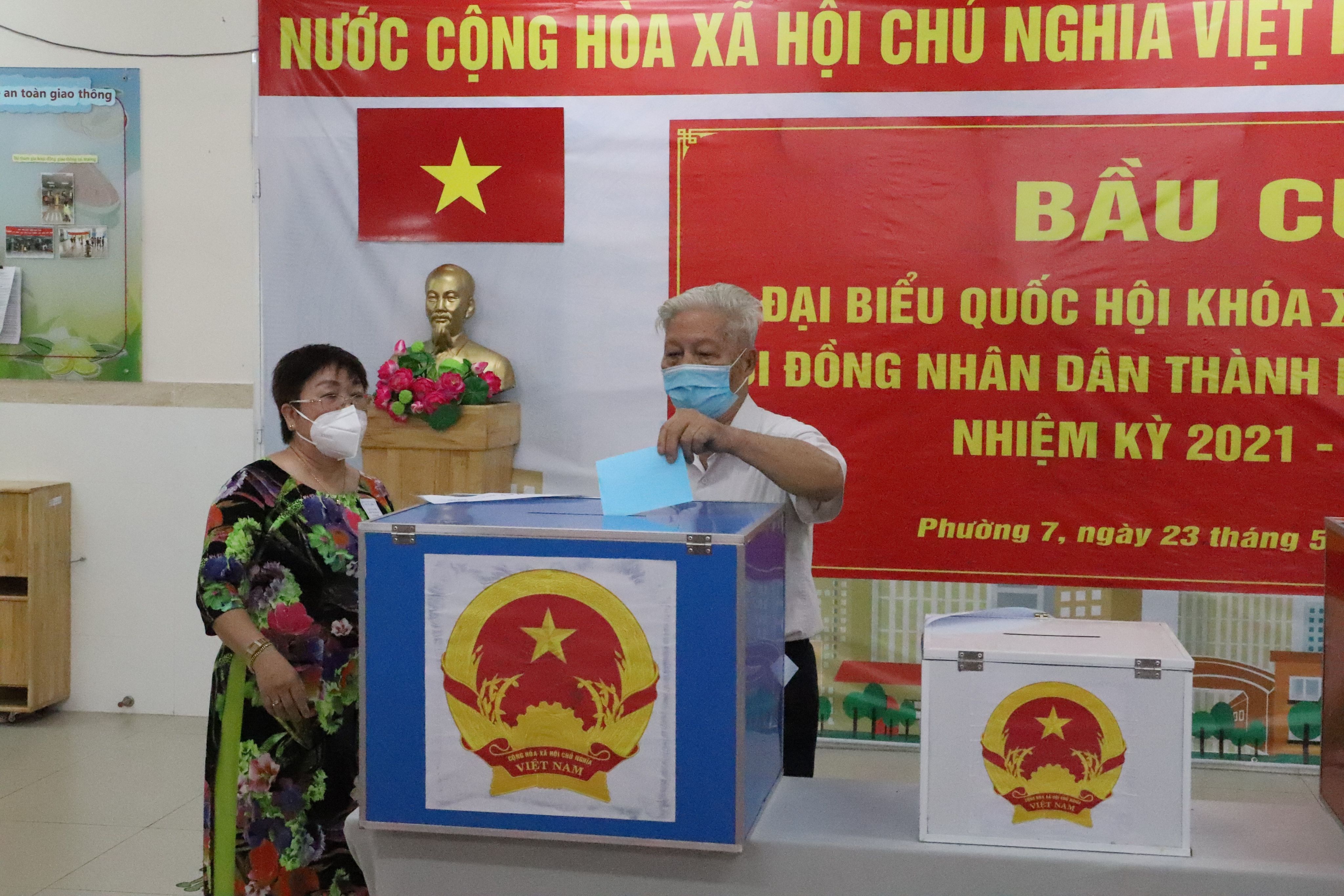 Cử tri bỏ phiếu bầu cử đại biểu Quốc hội khóa XV và đại biểu Hội đồng nhân dân các cấp nhiệm kỳ 2021-2026 tại Tổ bầu cử số 062, phường 7, quận Tân Bình, Thành phố Hồ Chí Minh.