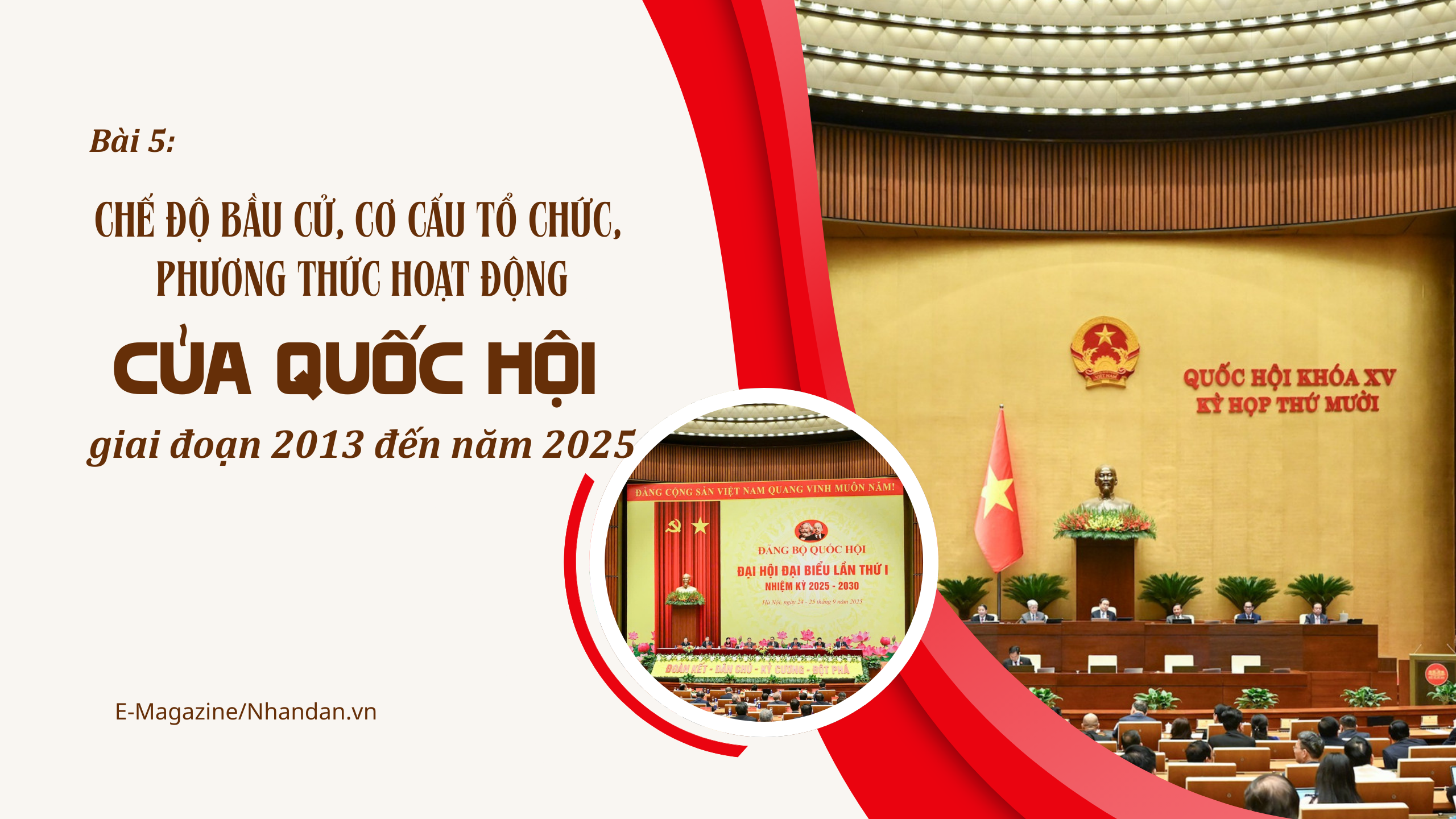 Tám mươi năm qua, dưới sự lãnh đạo của Đảng, Quốc hội Việt Nam đã không ngừng lớn mạnh, ngày càng thực hiện tốt hơn chức năng là cơ quan đại biểu cao nhất của nhân dân, cơ quan quyền lực nhà nước cao nhất của nước Cộng hòa xã hội chủ nghĩa Việt Nam. Loạt bài này điểm lại những nét chính về chế độ bầu cử, cơ cấu tổ chức và phương thức hoạt động của Quốc hội từ khi hình thành cho tới nay.