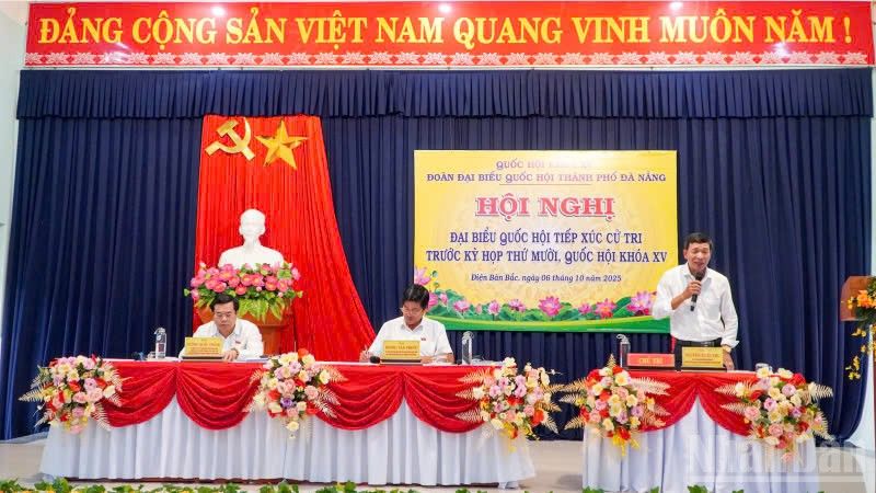 Các đại biểu Đoàn đại biểu Quốc hội thành phố Đà Nẵng ghi nhận các kiến nghị của cử tri phường Điện Bàn Bắc, ngày 6/10/2025.