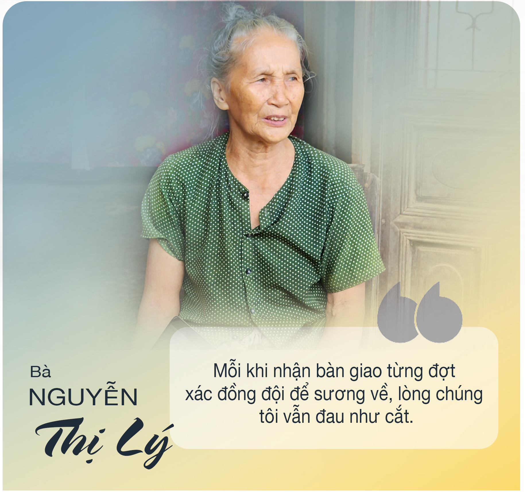 “Khi nớ, anh chị em đều xác định: đối mặt với bom đạn là sẽ có hy sinh. May nhờ, rủi chịu. Thế nhưng, mỗi khi nhận bàn giao từng đợt xác đồng đội để sương về [gánh về - PV], lòng chúng tôi vẫn đau như cắt”, kể tới đây, mắt bà Lý đã đỏ hoe.