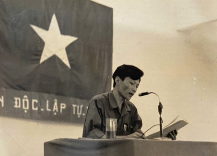Nhà giáo Đỗ Trọng Văn phát biểu tại Lễ chào mừng Ngày Giải phóng hoàn toàn miền nam, thống nhất đất nước tại Trường đại học Văn khoa Sài Gòn.