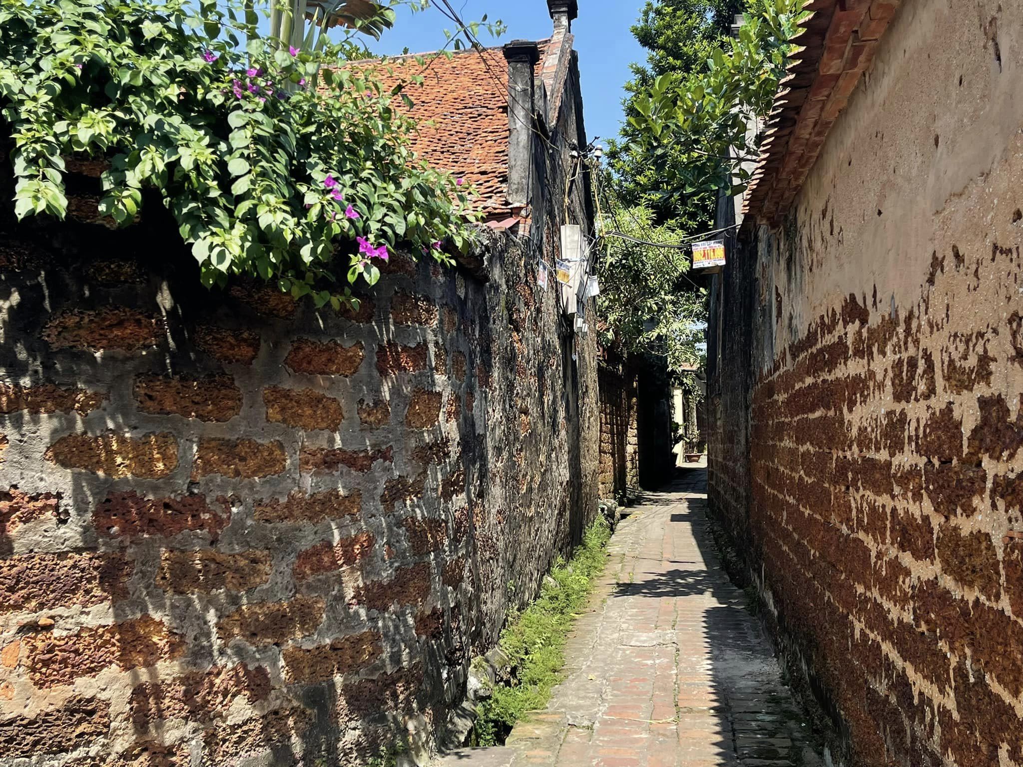 Những con ngõ nhỏ với tường hai bên bằng gạch đá ong là đặc trưng của làng cổ Đường Lâm. (Ảnh: Nina May)