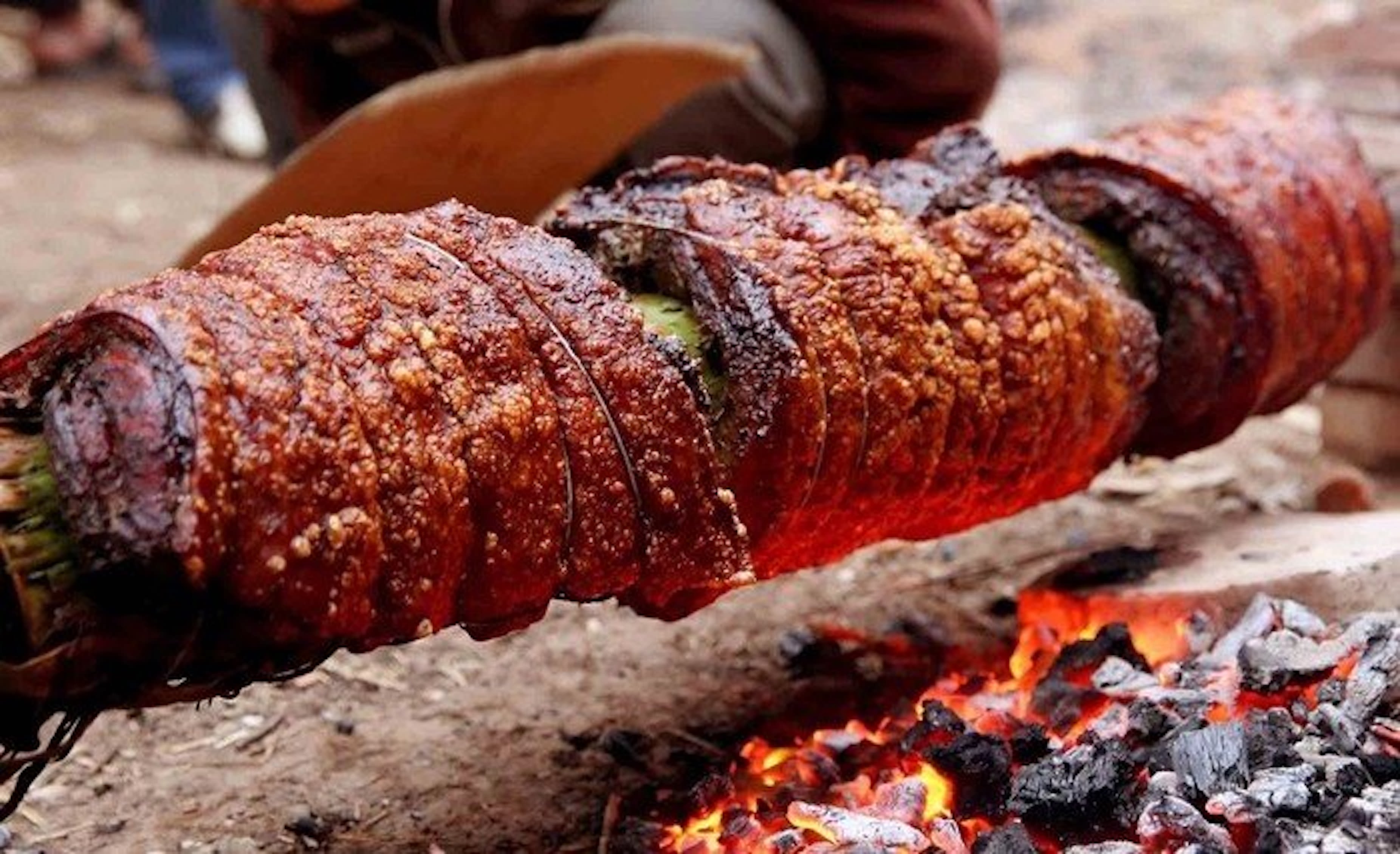 Công phu nhất trong các món ẩm thực ở Đường Lâm là món thịt quay giòn.
