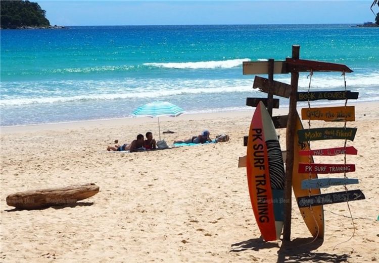 Du khách nước ngoài trên bãi biển Kata, Phuket.
