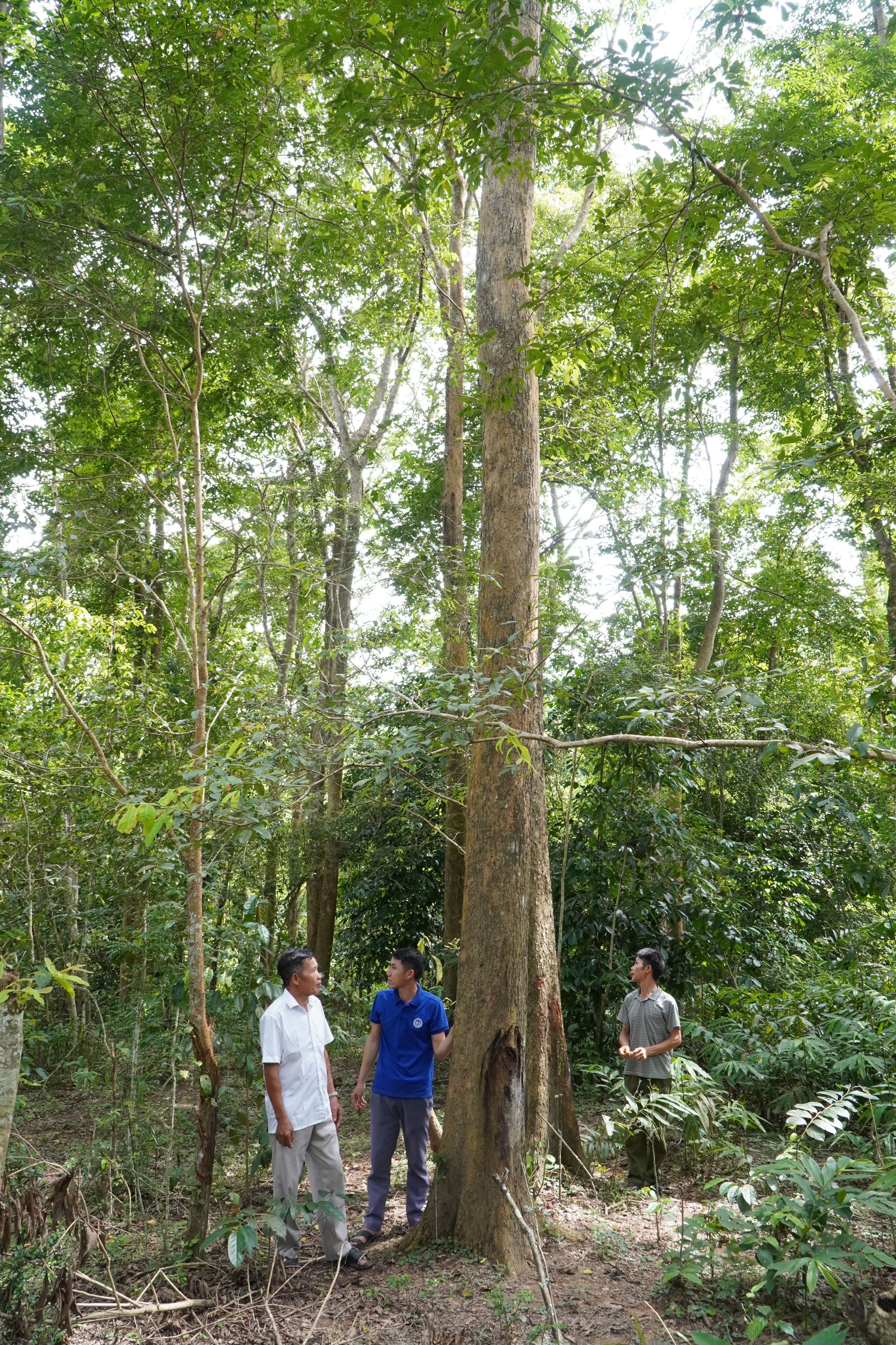 “Ngày xưa, cây chỉ to bằng bắp tay”, già Tuấn chỉ tay vào một cây đinh hương cao vút, tán lá xòe rộng như chiếc lọng xanh khổng lồ. “Giờ phải mấy người ôm không xuể. Muốn đi hết khu rừng này, phải mất cả ngày. Mà chúng tôi không dám tự tiện vào rừng một mình đâu, phải xin phép tổ bảo vệ rừng, có kiểm tra, có ghi sổ, để ai cũng thấy rừng là tài sản chung, không phải của riêng ai”, già làng Tuấn kể thêm.