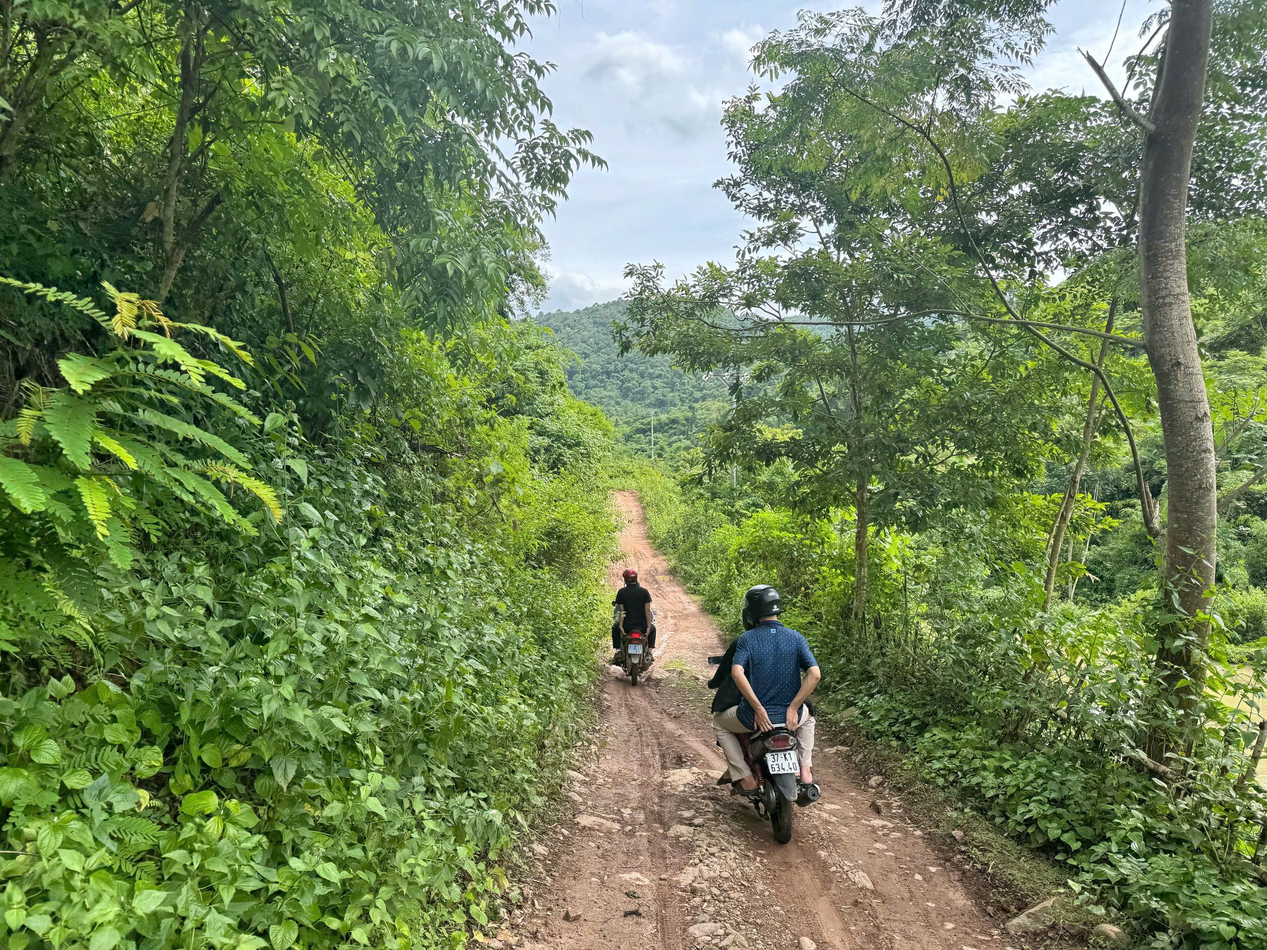 Phóng viên Báo Nhân Dân di chuyển vào bản Na Hang.