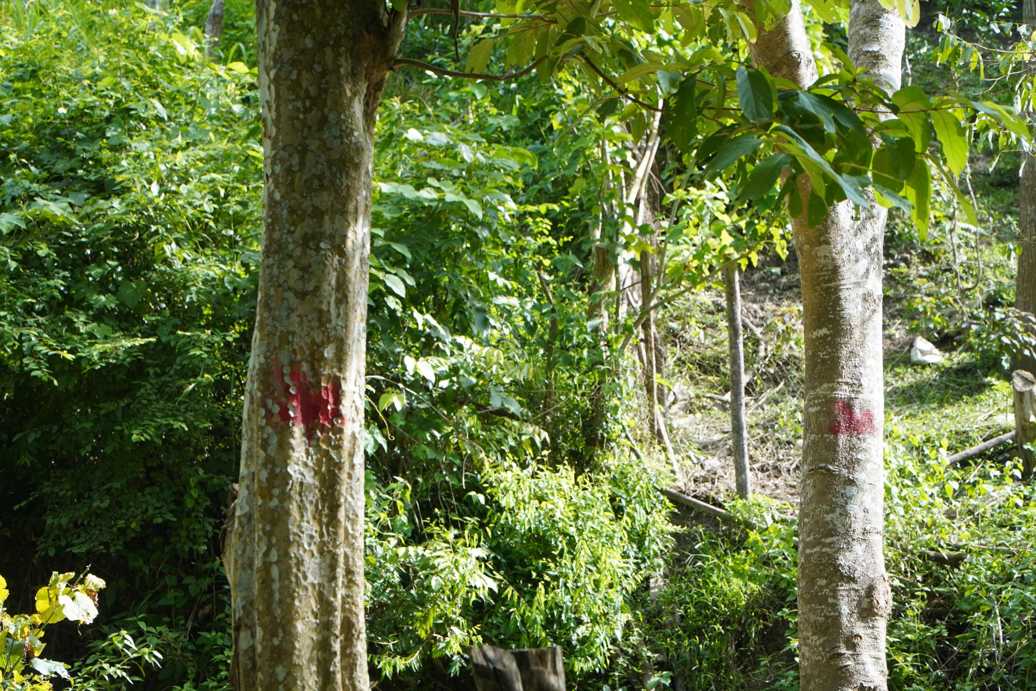 Những cây to được người dân trong bản đánh dấu, đánh số để dễ quản lý.