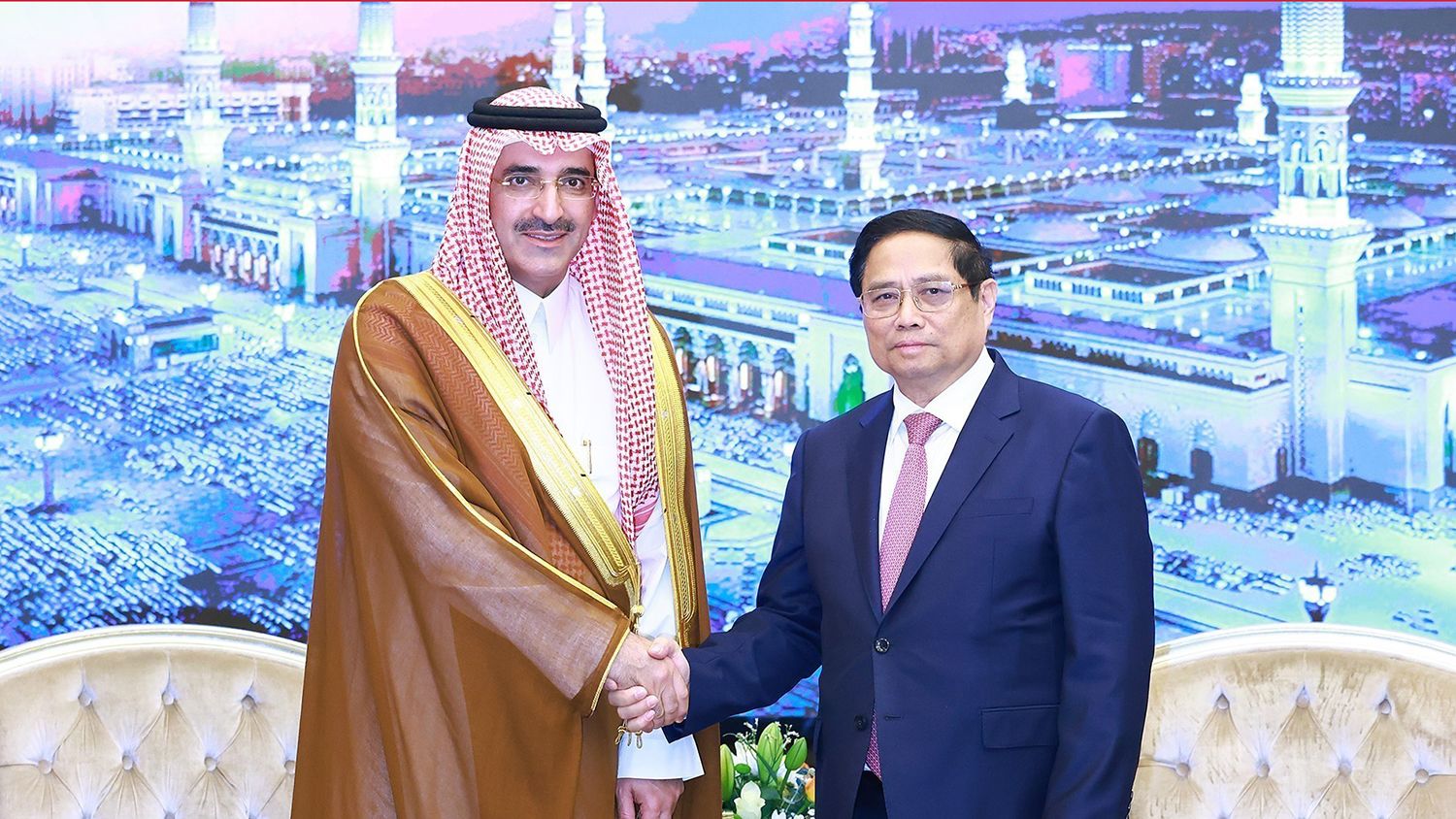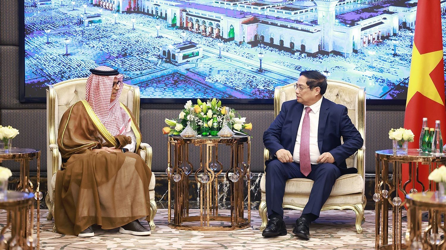 Trong khuôn khổ tham dự Hội nghị Sáng kiến đầu tư tương lai lần thứ 8 và thăm làm việc tại Vương quốc Saudi Arabia, tại thủ đô Riyadh, Thủ tướng Phạm Minh Chính đã có cuộc hội đàm với Hoàng Thái tử kiêm Thủ tướng Saudi Arabia Mohammed Bin Salman Bin Abdulaziz Al Saud.
