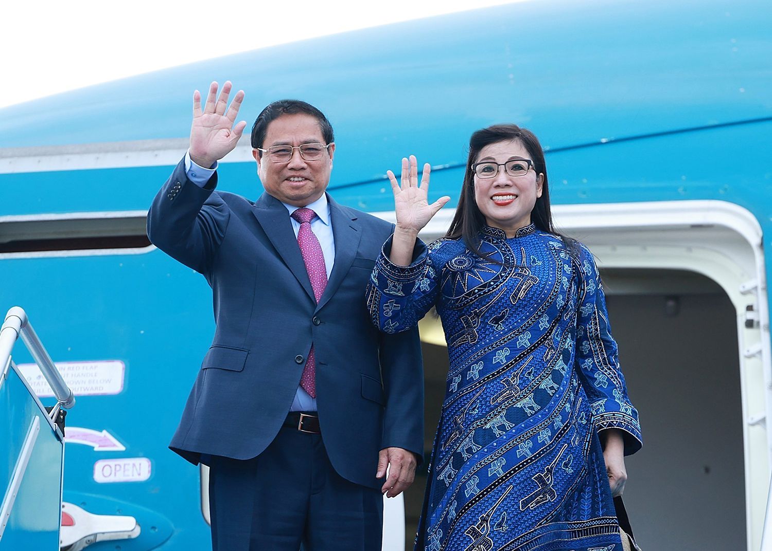 Sáng 27/10, Thủ tướng Phạm Minh Chính và Phu nhân rời Thủ đô Hà Nội, lên đường thăm chính thức Các Tiểu vương quốc Arab thống nhất (UAE), Nhà nước Qatar; tham dự Hội nghị Sáng kiến đầu tư tương lai lần thứ 8 và thăm làm việc Vương quốc Saudi Arabia. (Ảnh: TTXVN)