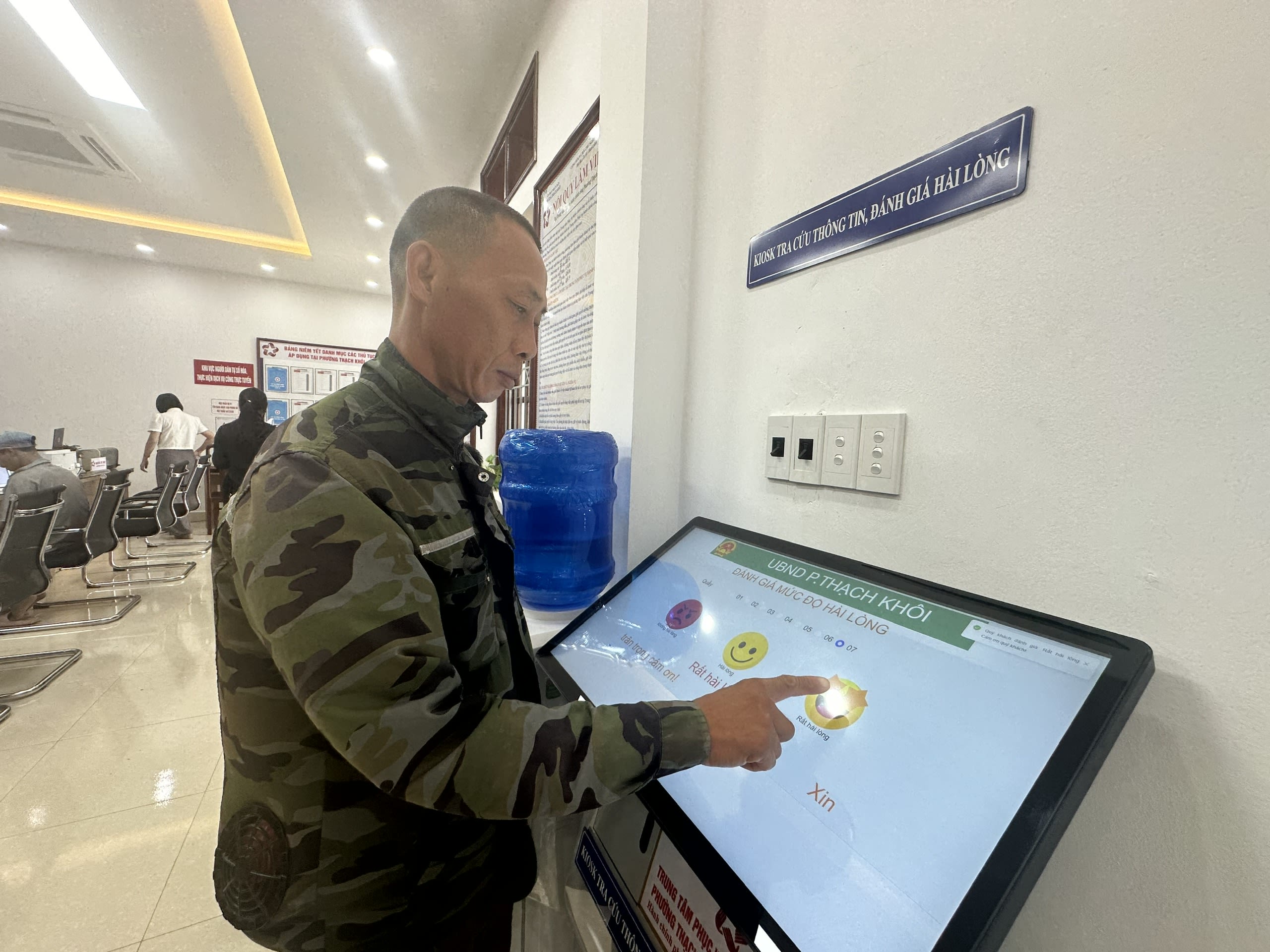 Người dân phường Thạch Khôi, thành phố Hải Phòng bày tỏ sự hài lòng về chất lượng phục vụ tại Trung tâm phục vụ hành chính công của phường.