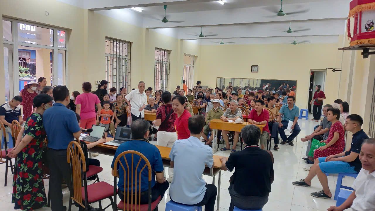 Cán bộ tổ dân phố số 10, phường Yên Hoà, thành phố Hà Nội tích cực hỗ trợ người dân nhận quà tặng nhân dịp Quốc khánh 2/9.