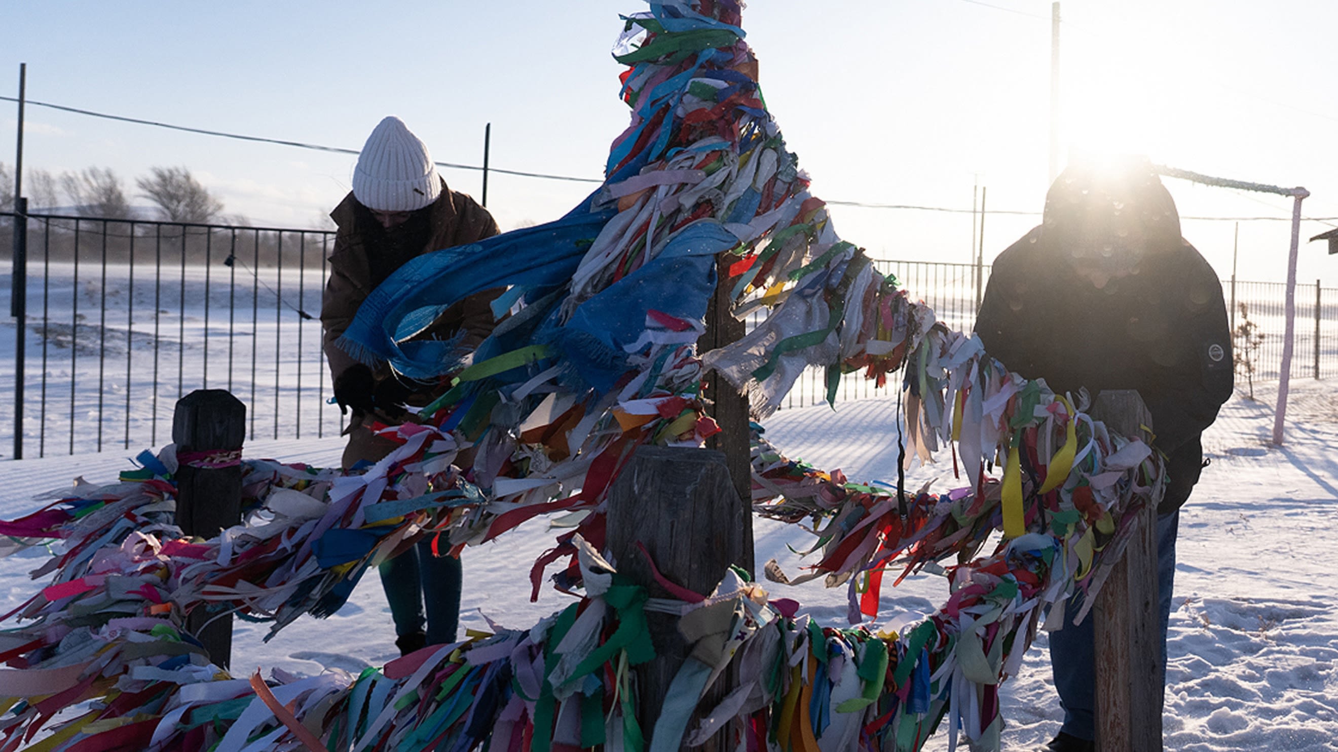 Tiến gần cột gỗ được buộc nhiều dải ruy băng sáng màu, Tatiana lẩm nhẩm tên tuổi, trình bày lý do tới đây và cầu xin thượng lộ bình an. Nghi lễ thể hiện sự tôn trọng đối với các vị thần địa phương.