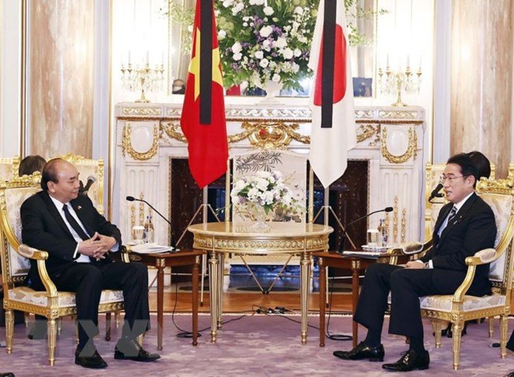 Tại cuộc hội đàm với Thủ tướng Nhật Bản Kishida Fumio, Chủ tịch nước Nguyễn Xuân Phúc đề nghị hai bên tăng cường tin cậy chính trị, duy trì thường xuyên các chuyến thăm, tiếp xúc cấp cao và các cấp, xứng tầm quan hệ Đối tác chiến lược sâu rộng. Chủ tịch nước mong muốn, hai bên đẩy mạnh hợp tác hiệu quả, thực chất về quốc phòng an ninh; kết nối hai nền kinh tế, tăng cường chuỗi cung ứng, mở rộng hợp tác đầu tư, thương mại, chuyển đổi số; tiếp tục hợp tác ODA thế hệ mới mang lại hiệu quả cao; tăng cường hợp tác y tế, phòng chống thiên tai, ứng phó biến đổi khí hậu, chuyển đổi năng lượng xanh, mang lại lợi ích thiết thực cho người dân hai nước.