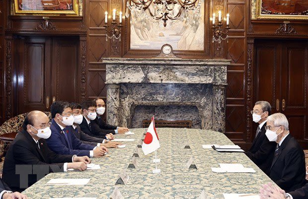 Tại cuộc hội kiến Chủ tịch Hạ viện Nhật Bản Hosoda Hiroyuki và Chủ tịch Thượng viện Nhật Bản Otsuji Hidehisa, Chủ tịch nước Nguyễn Xuân Phúc đánh giá cao sự phát triển tốt đẹp của quan hệ Đối tác chiến lược sâu rộng, giao lưu, hợp tác ngày càng chặt chẽ giữa Quốc hội, Nghị sĩ và Liên minh Nghị sĩ hữu nghị hai nước trong đó có Nhóm Nghị sĩ trẻ; khẳng định Việt Nam coi trọng và mong muốn cùng Nhật Bản tăng cường hơn nữa quan hệ Đối tác chiến lược sâu rộng.