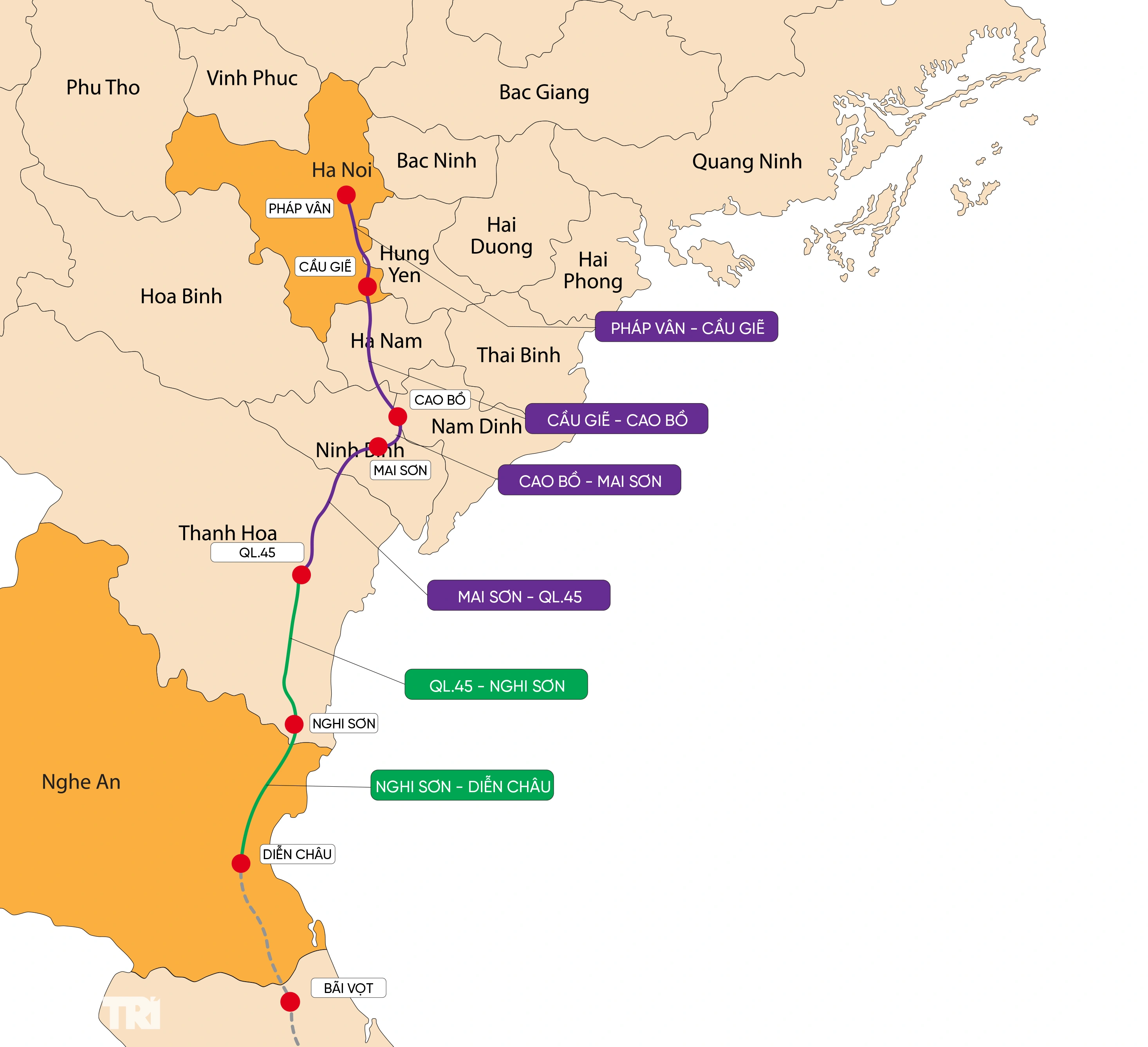 Trục đường cao tốc từ Hà Nội đến Nghệ An.