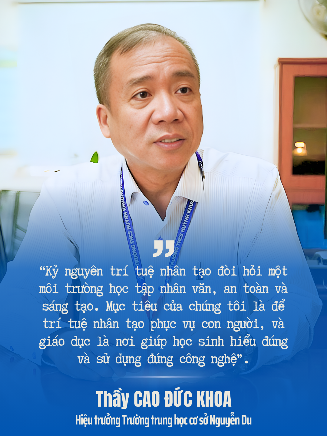 Ở bậc trung học cơ sở, yêu cầu đặt ra không chỉ là làm quen với công nghệ, mà còn là hình thành năng lực tư duy và đạo đức sử dụng trí tuệ nhân tạo. Tại Trường trung học cơ sở Nguyễn Du, phường Bến Thành, việc chuẩn bị cho kỷ nguyên trí tuệ nhân tạo được nhìn nhận như một quá trình xây dựng năng lực con người, từ giáo viên, học sinh đến cộng đồng nhà trường.