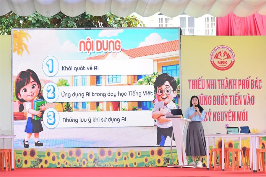 Tại Trường tiểu học Nguyễn Bỉnh Khiêm, phường Sài Gòn, việc ứng dụng trí tuệ nhân tạo được triển khai từ nền tảng căn bản. Nhà trường xác định phương châm phát triển kỹ năng công dân số cho học sinh tiểu học, coi đây là nền móng hình thành con người số trong xã hội học tập và quốc gia số. Từ định hướng đó, các bước đi được xây dựng một cách bài bản, bắt đầu từ hạ tầng, đội ngũ đến phương pháp giảng dạy.
