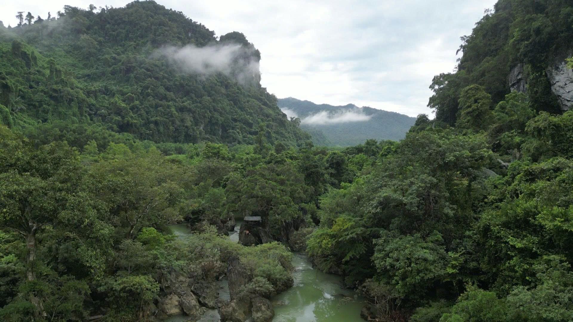 Phía xa là động Hang Tiên, với vòm hang cao 30m, thạch nhũ lấp lánh – biểu tượng tự nhiên của Cao Quảng trước đây nay là xã Tuyên Hóa, tỉnh Quảng Trị, được người dân ví như “trái tim rừng Trường Sơn”.