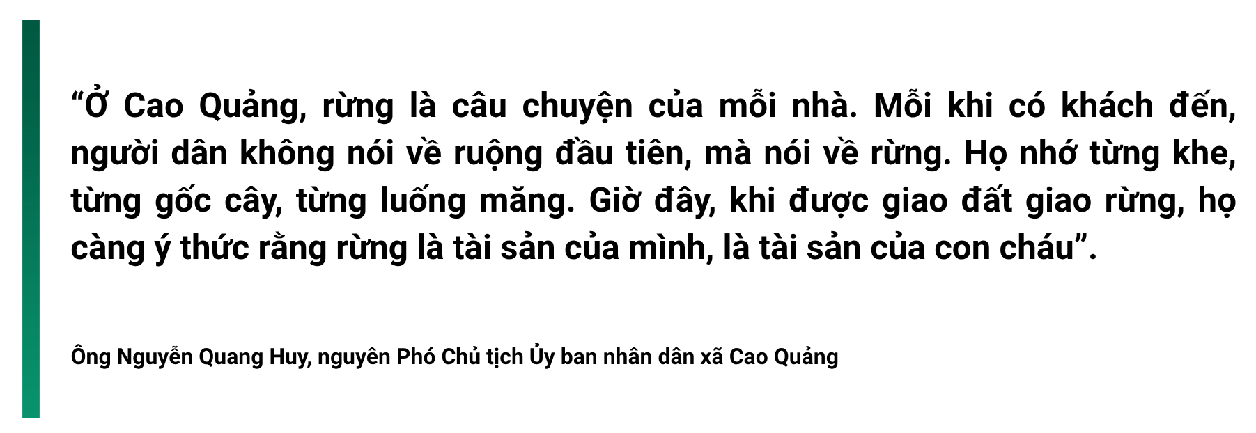 Câu chuyện của Cao Quảng trước đây nay là xã Tuyên Hóa, tỉnh Quảng Trị không dừng lại ở việc giữ rừng, mà còn mở ra hướng đi mới cho phát triển nông thôn miền núi: lấy rừng làm trung tâm, lấy cộng đồng làm chủ thể.