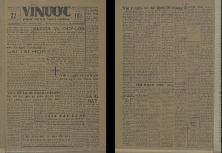 Báo Vì nước, ngày 22/8/1946. Ảnh chụp màn hình từ Kho số hóa Thư viện Quốc gia.