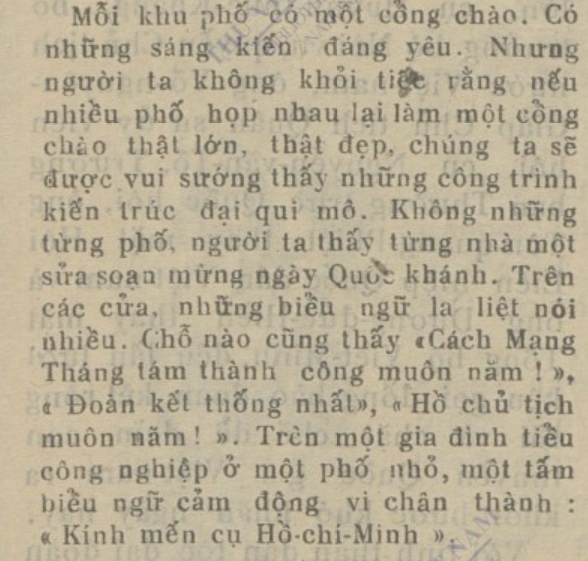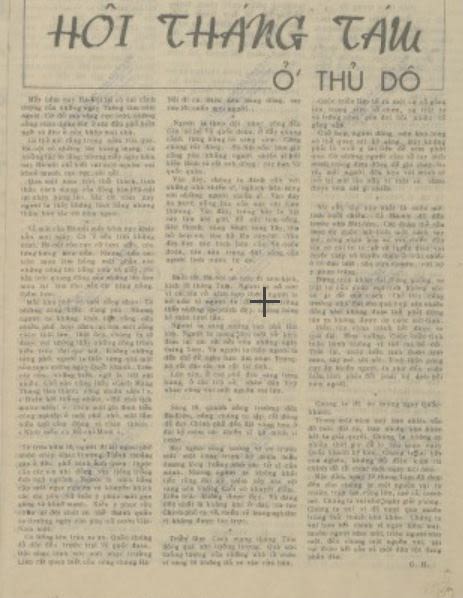 Trích bài báo "Hội Tháng Tám ở Thủ đô", báo Sự Thật số đặc biệt kỷ niệm Cách mạng Tháng Tám, ngày 24/8/1946. Ảnh chụp màn hình từ Kho số hóa Thư viện Quốc gia.