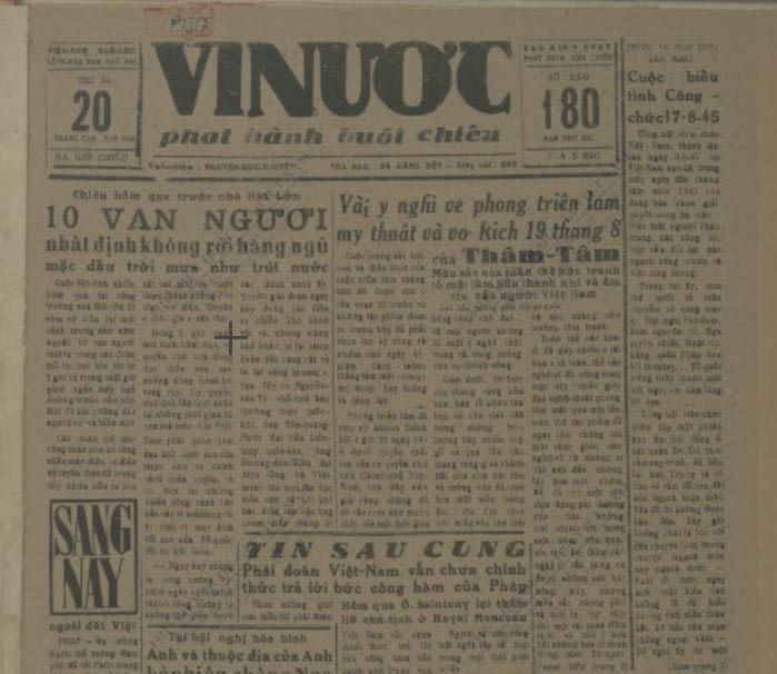 Báo Vì nước, ngày 20/8/1946. Ảnh chụp màn hình từ Kho số hóa Thư viện Quốc gia.