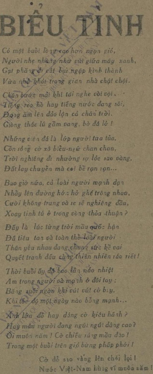 Bài thơ “Biểu tình” của tác giả Nguyễn Ngọc Kha (báo Lao Động, ngày 24/8/1946). Ảnh chụp màn hình từ Kho số hóa Thư viện Quốc gia.