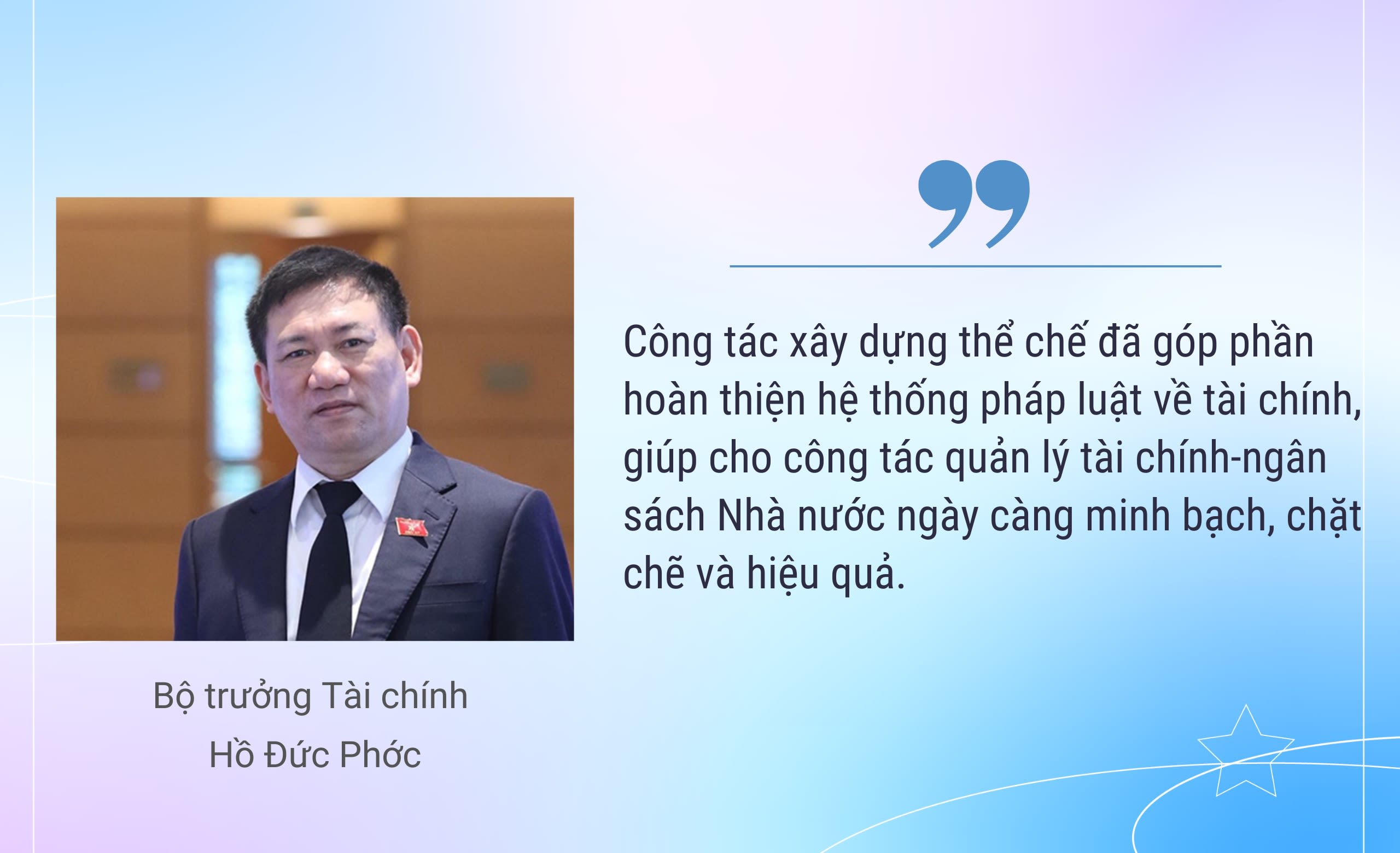 Trước diễn biến giá xăng dầu tăng cao, Bộ Tài chính đã trình Ủy ban Thường vụ Quốc hội ban hành hai Nghị quyết về giảm thuế bảo vệ môi trường, qua đó đã góp phần giảm giá bán xăng dầu, tháo gỡ khó khăn cho doanh nghiệp và kiểm soát áp lực tăng giá cả, lạm phát, hạn chế những tác động tiêu cực đến phát triển kinh tế-xã hội và đời sống người dân. Qua đó, công tác xây dựng thể chế đã góp phần hoàn thiện hệ thống pháp luật về tài chính, giúp cho công tác quản lý tài chính-ngân sách Nhà nước ngày càng minh bạch, chặt chẽ và hiệu quả.