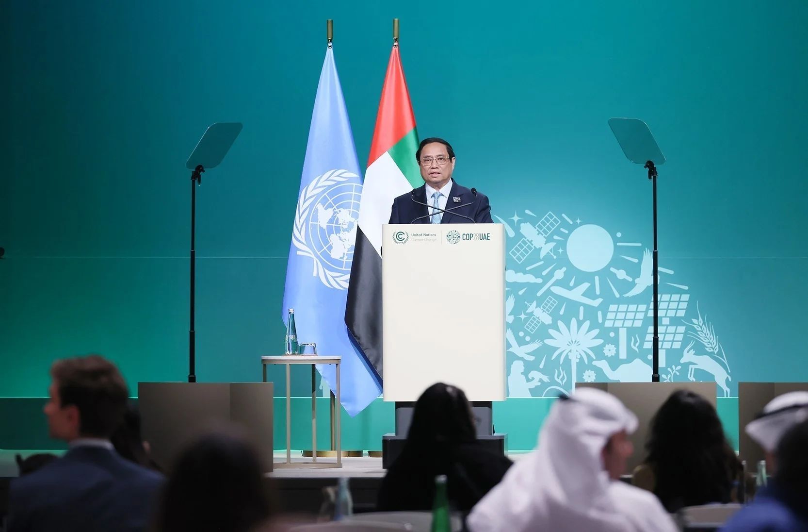 Thủ tướng Phạm Minh Chính phát biểu tại Hội nghị Thượng đỉnh Hành động khí hậu thế giới trong khuôn khổ COP28. (Ảnh: TTXVN)