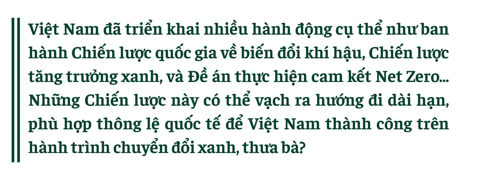 Nhìn chung, Việt Nam đã vạch ra lộ trình rõ ràng cho tương lai dài hạn; thách thức hiện nay là thu hẹp khoảng cách tài chính và đẩy nhanh thực thi ở mọi cấp độ.