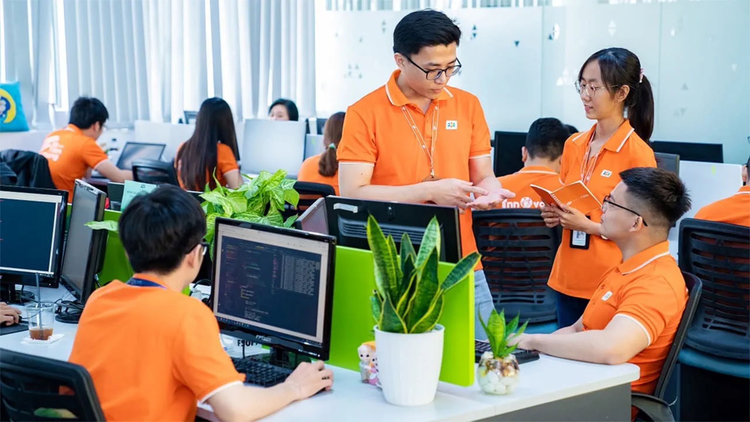 Góc văn phòng trong Khu CNTT tập trung FPT Complex của FPT tại Đà Nẵng. FPT Complex có quy mô 59.000 m2 cung cấp chỗ làm việc cho 10.000 nhân sự.