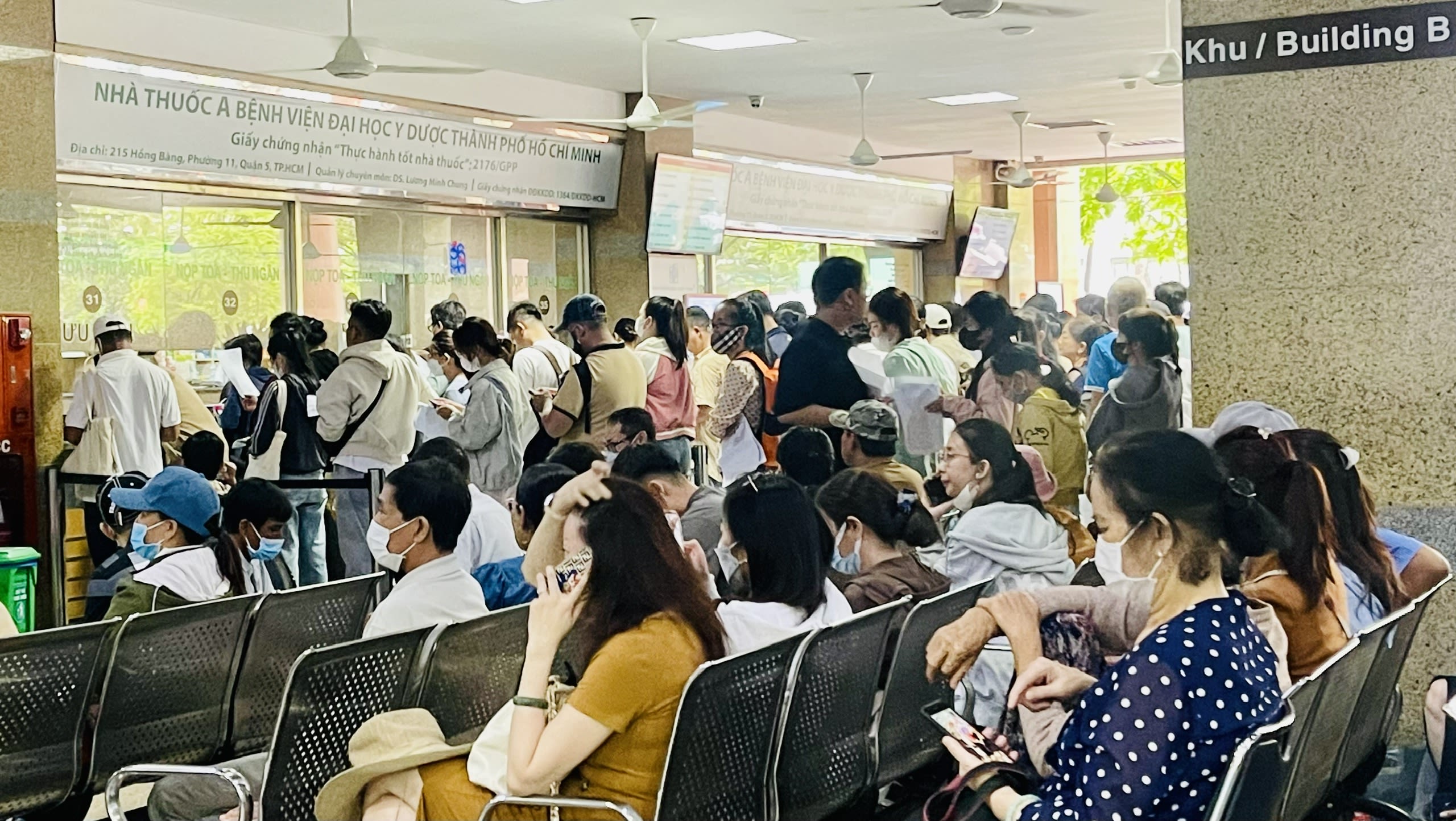 Người dân xếp hàng chờ phát thuốc tại Bệnh viện Đại học Y Dược TP Hồ Chí Minh.