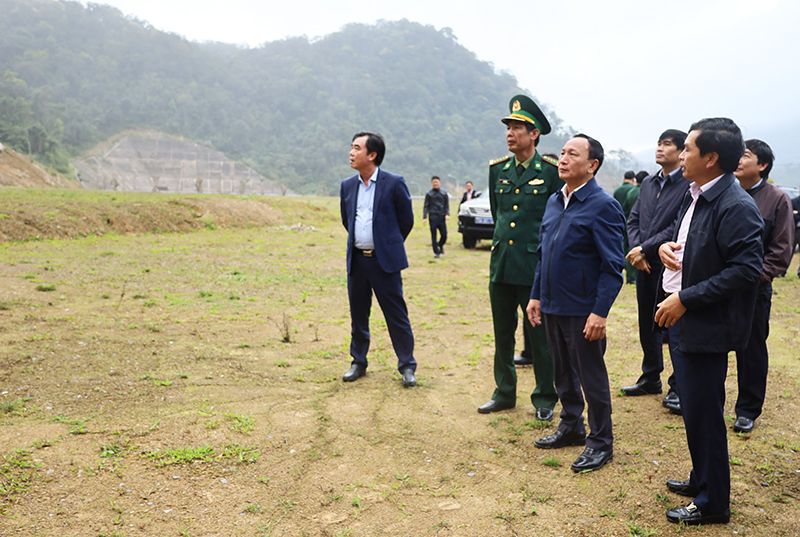 Đồng chí Trần Hải Châu (thứ 2, bên phải), Phó Bí thư Thường trực Tỉnh ủy Quảng Bình, kiểm tra điểm sạt lở tại khu vực Cửa khẩu quốc tế Cha Lo, ngày 14/02/2023. (Ảnh: baoquangbinh.vn)