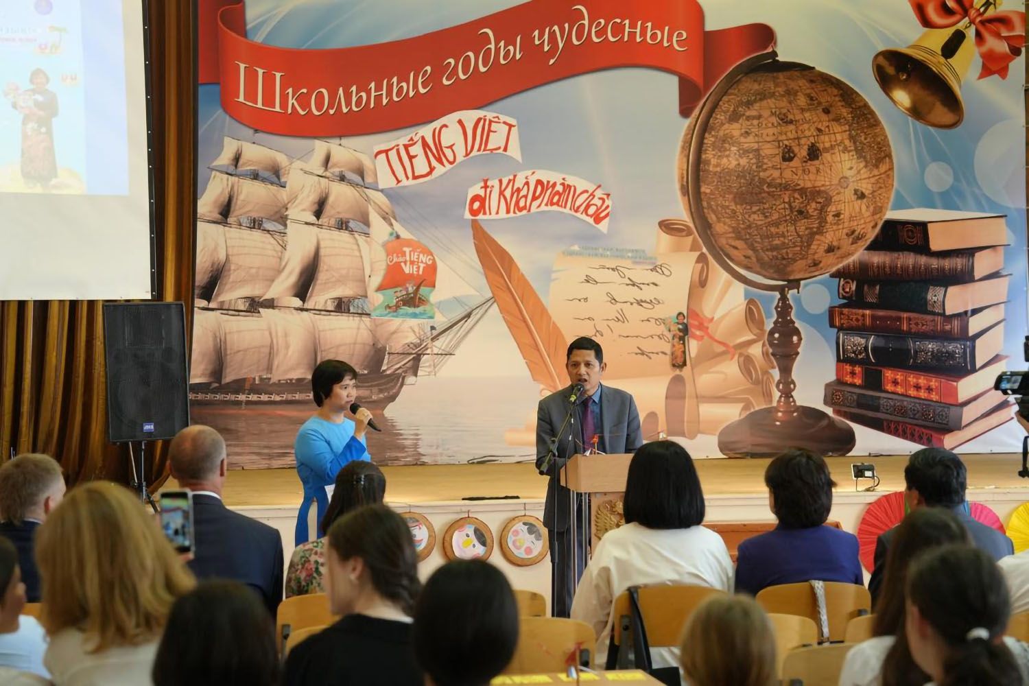 Tiến sĩ Nguyễn Quốc Hùng phát biểu tại Ngày hội tiếng Việt tại thành phố Ulyanovsk năm 2024.