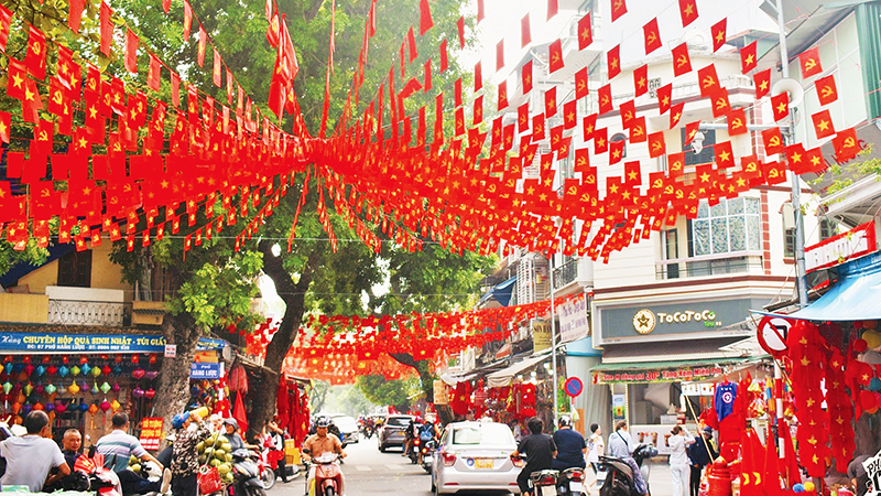 Đường phố Hà Nội trang trí rực rỡ cờ hoa mừng Quốc khánh. (Ảnh: Nhandan.vn)