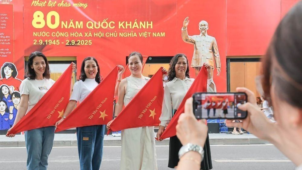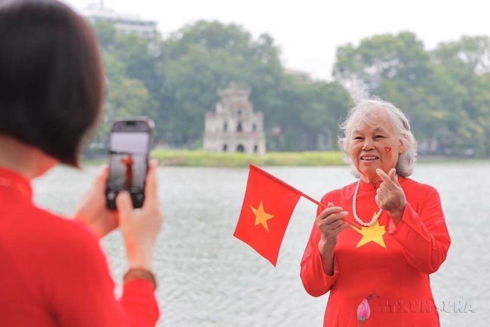 Đông đảo người dân và du khách nô nức check-in, lưu giữ khoảnh khắc ý nghĩa trước thềm Lễ kỷ niệm 80 năm Quốc khánh. (Ảnh: TTXVN)