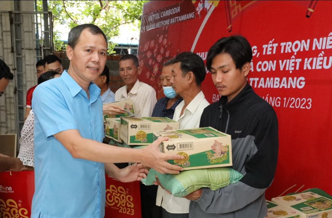 Tổng Lãnh sự Nguyễn Thành Văn tham gia tặng quà Tết cho bà con gốc Việt ở tỉnh Battambang.