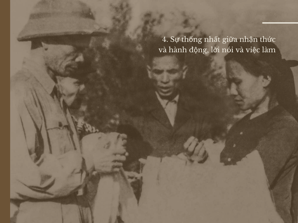 Hồ Chí Minh căn dặn: “Phải óc nghĩ, mắt trông, tai nghe, chân đi, miệng nói, tay làm. Chứ không phải chỉ nói suông, chỉ ngồi viết mệnh lệnh”(7). Tư tưởng phải chuyển hóa thành hành động cụ thể, hoàn thành nhiệm vụ, hiện thực hóa mục tiêu và nhiệm vụ chính trị được giao phó.