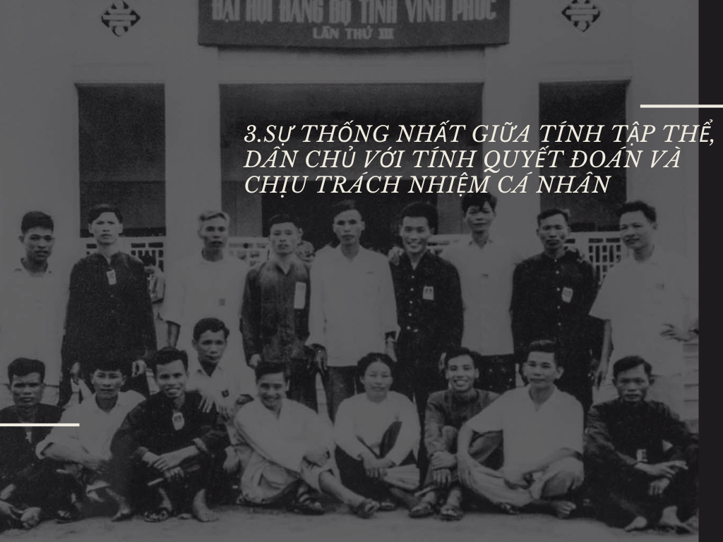 Có ý thức tập thể cao, biết tạo ra bầu không khí làm việc dân chủ, tôn trọng và lắng nghe ý kiến tập thể, phát huy trí tuệ tập thể, đồng thời người lãnh đạo lại phải có tính quyết đoán, dám chịu trách nhiệm cá nhân để đưa ra những quyết định kịp thời đáp ứng yêu cầu của cuộc sống và công việc.