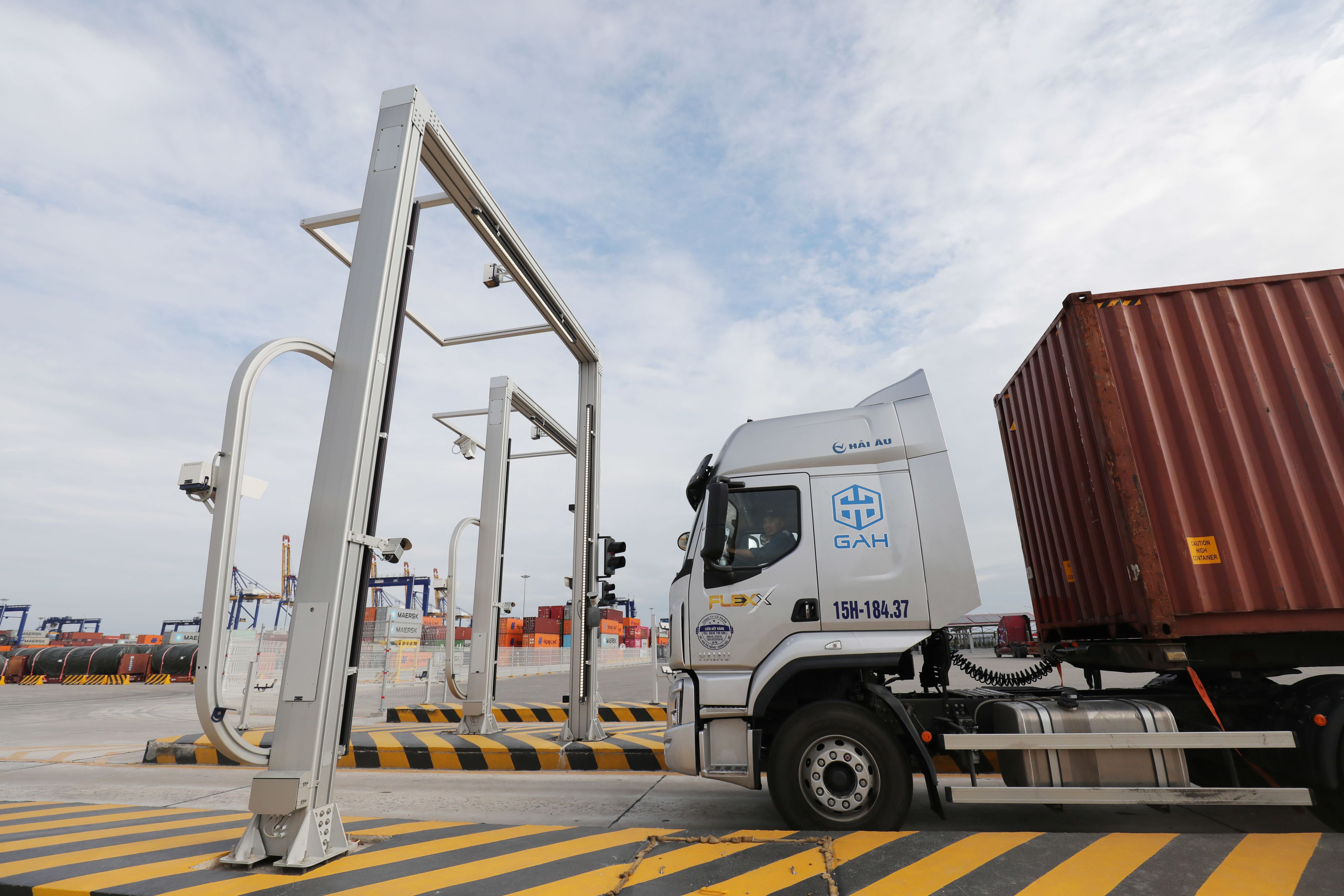 Smart gate tại cảng quốc tế Hateco giúp lưu thông nhanh hàng hóa ra vào.