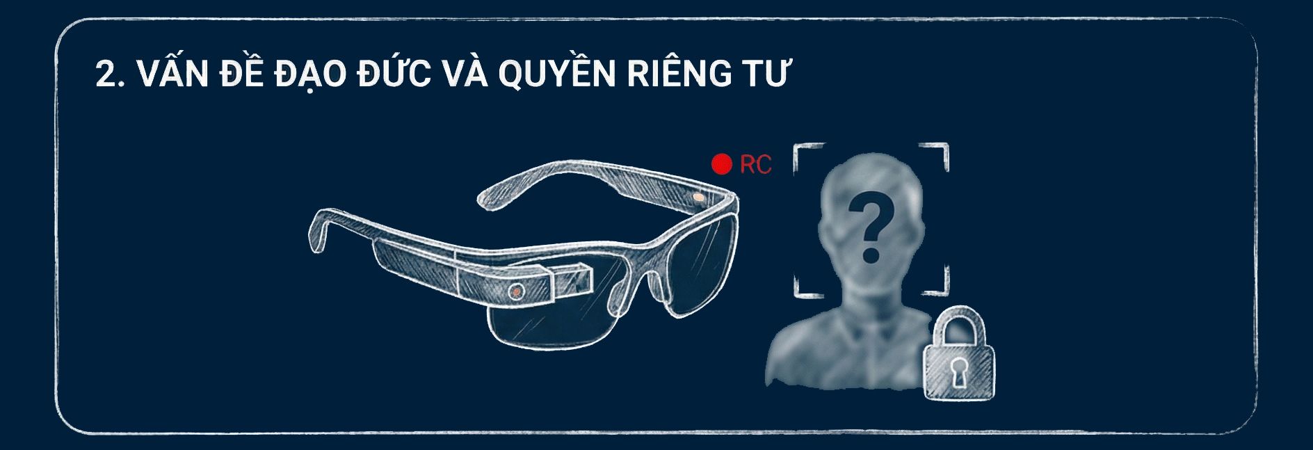 · Vấn đề đạo đức và quyền riêng tư: Khả năng ghi hình, ghi âm và nhận diện khuôn mặt của kính AI làm dấy lên lo ngại về việc người đối diện có bị ghi hình mà không hay biết hay không, điều này ảnh hưởng đến niềm tin xã hội.